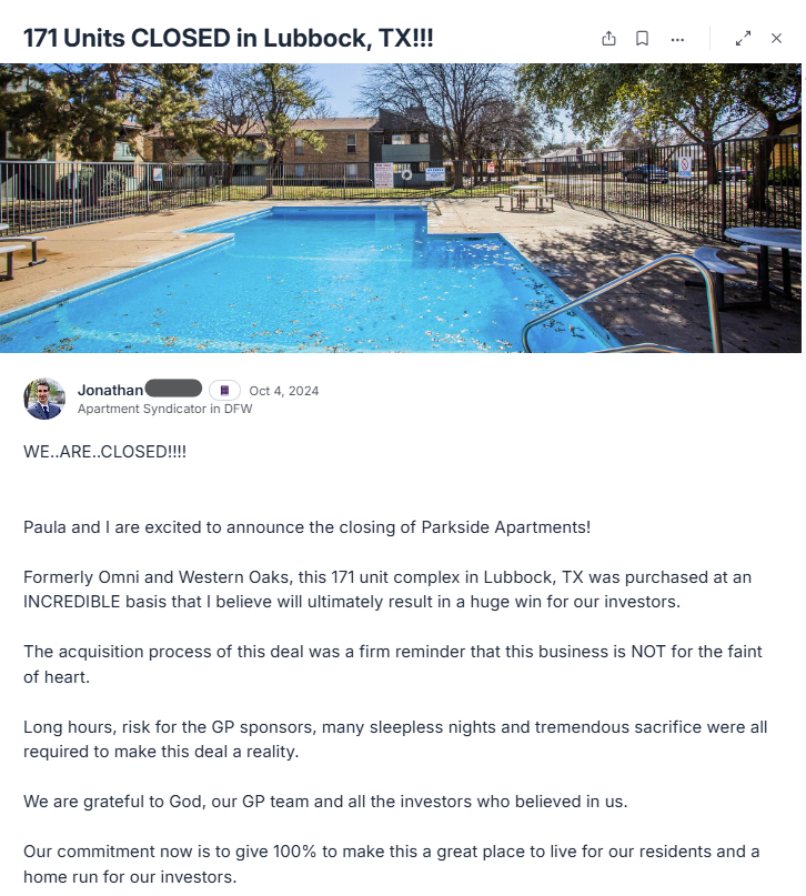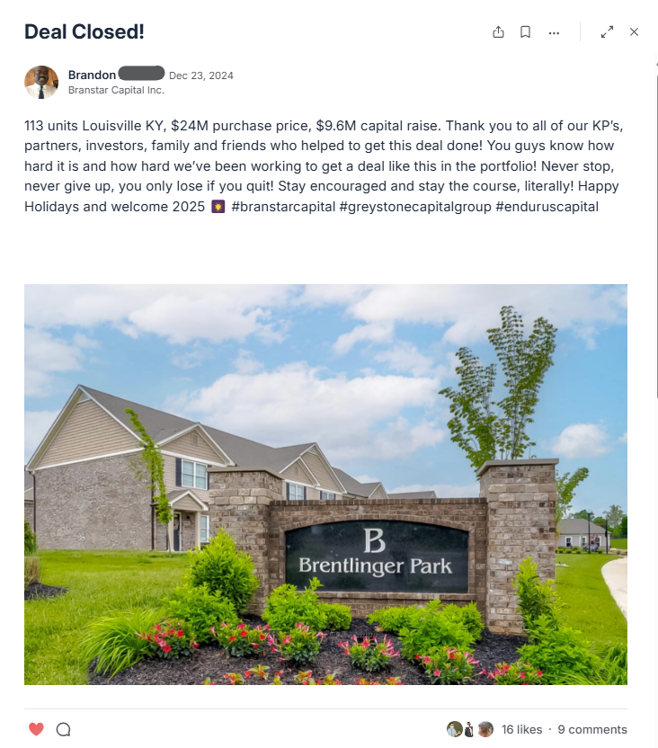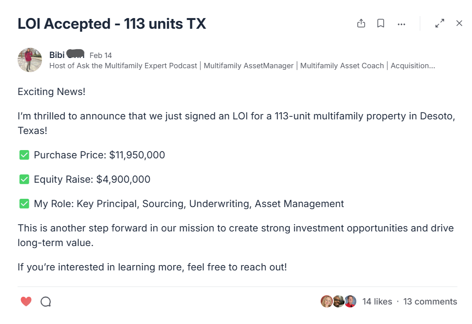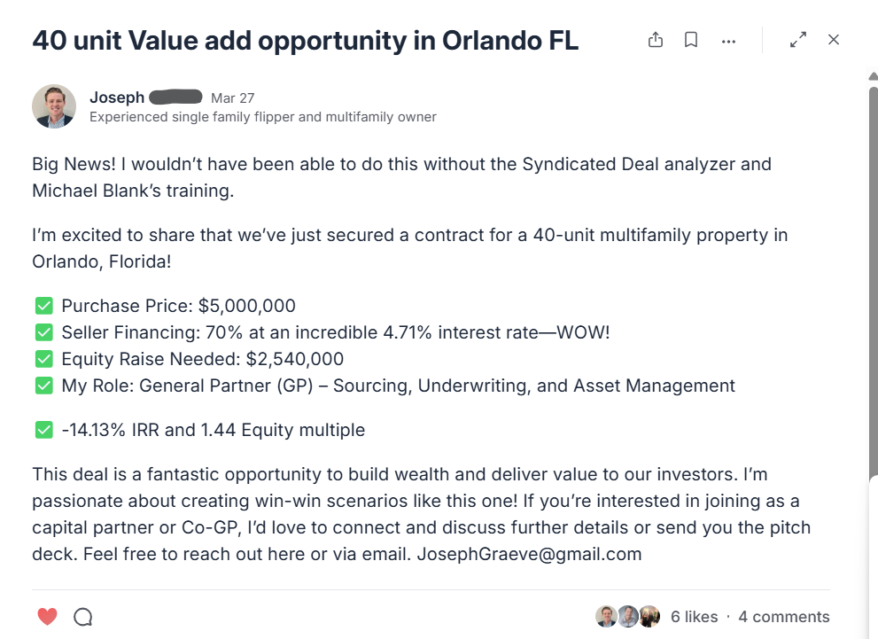 One of the biggest reasons people pursue multifamily is because syndication gives you a way to scale without relying only on your own capital.