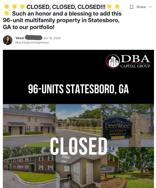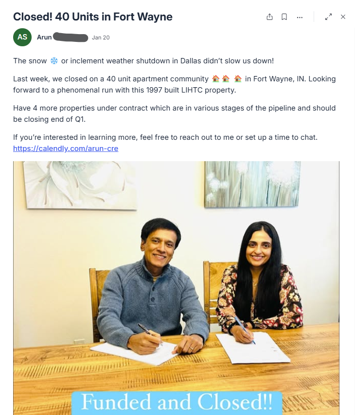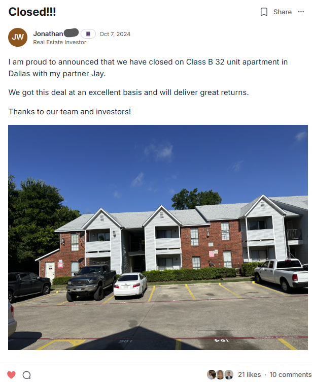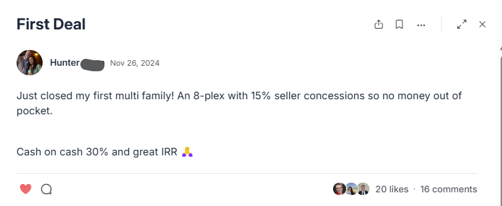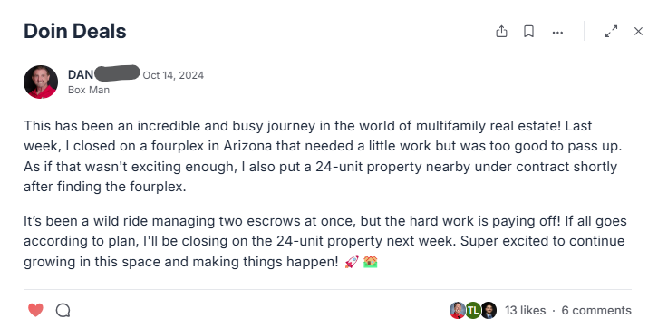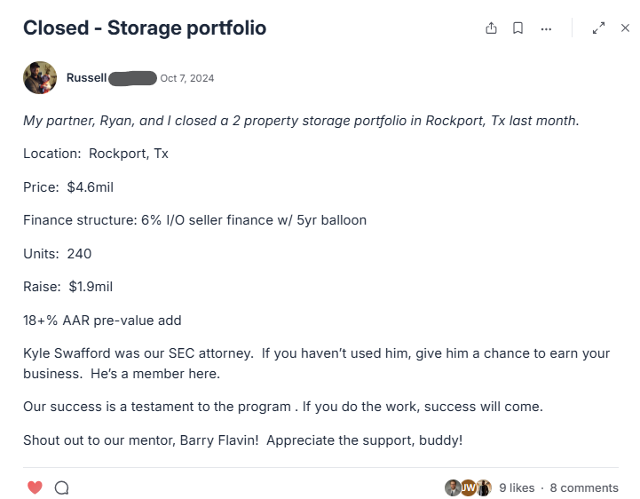 That said, a lot of members come in after realizing single-family scaling is slow, capital-intensive, and time-consuming.