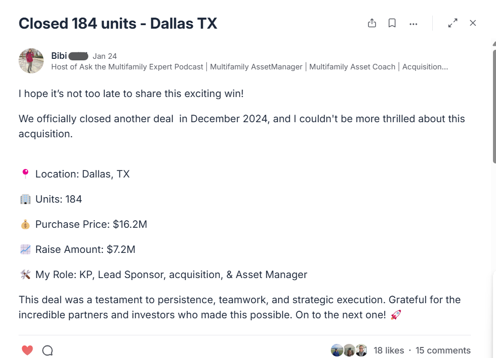 THE community if you want to close your first multifamily deal to achieve financial freedom.