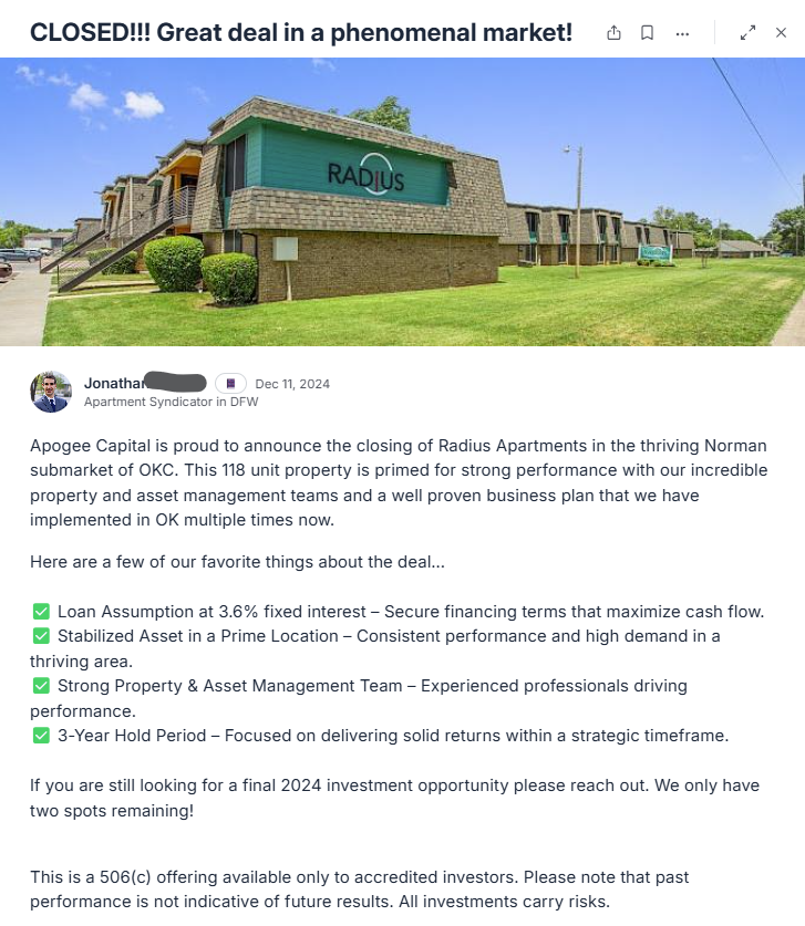 Learn the capital side of multifamily so you can scale beyond your own money (that’s what syndication really is).